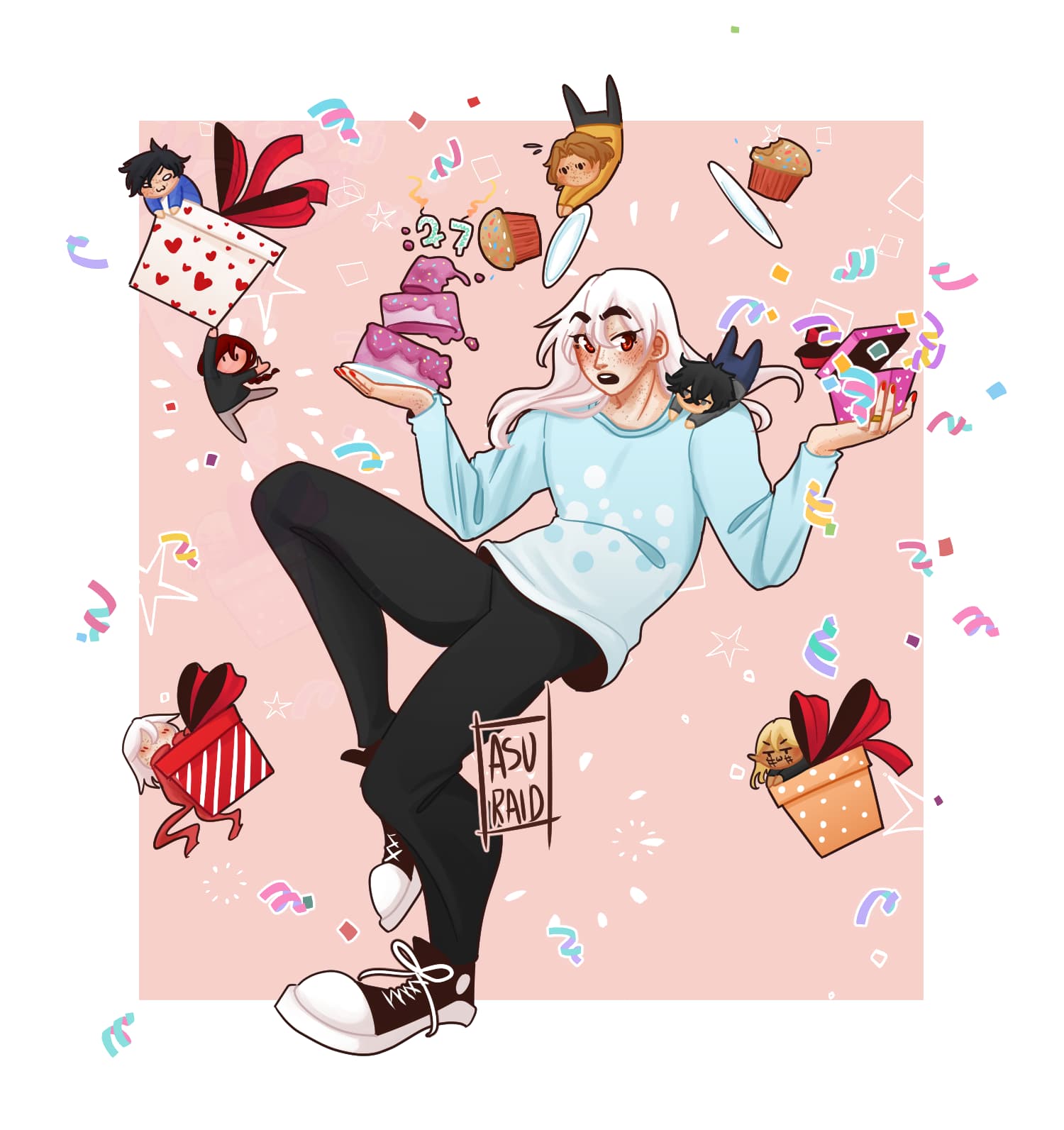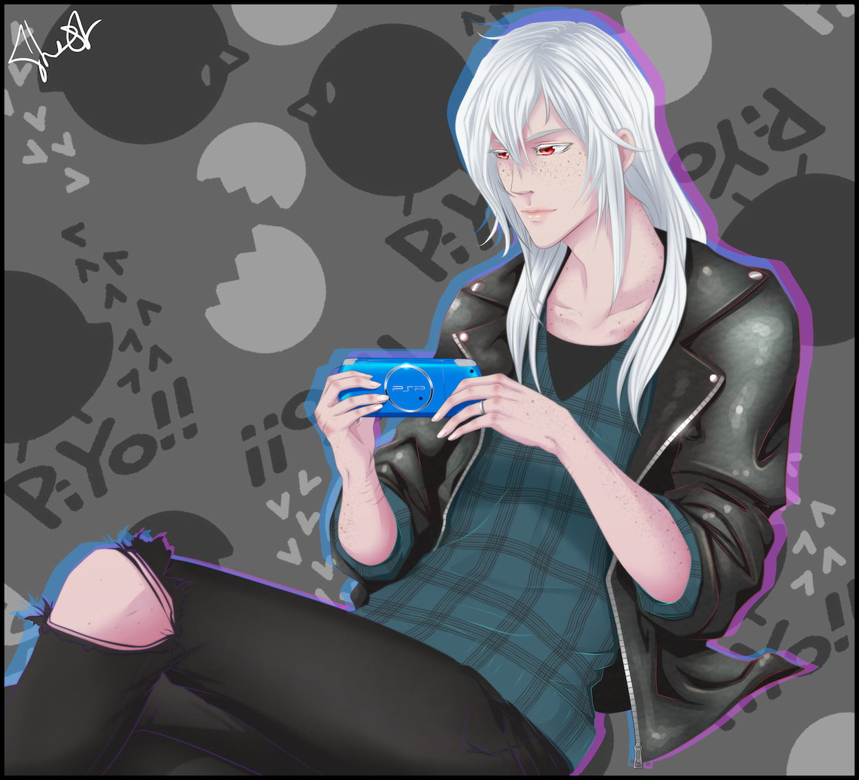 Hideki is a towering 6'4" tall man with albinism who is living in Japan with his husband, is primarily a streamer and works part-time at his uncle's café. He also runs a Youtube channel about games on the side; cosplaying and doing make-up for others are core hobbies alongside gaming.